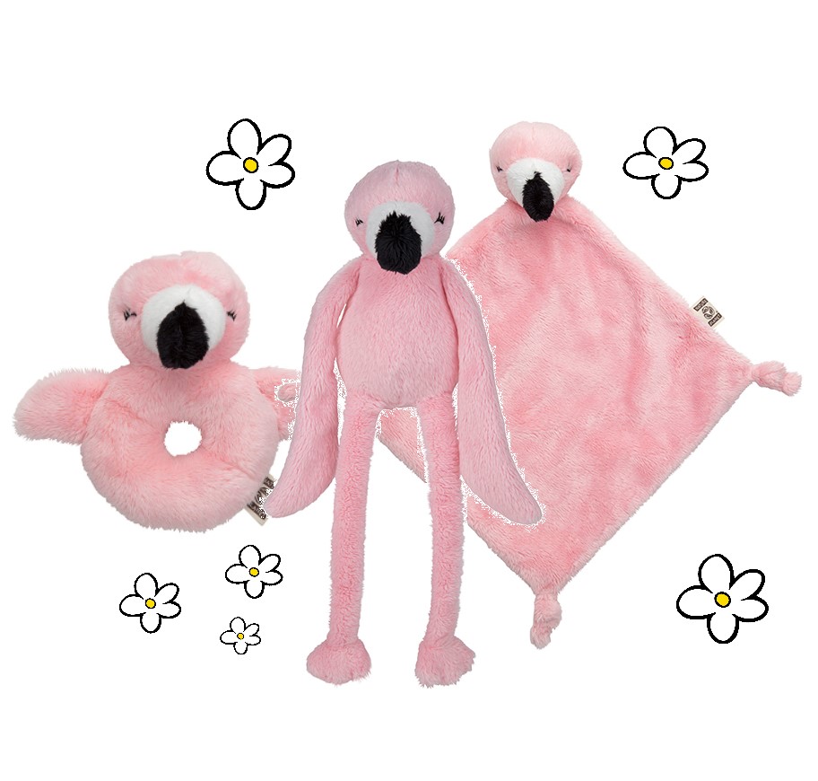 Nature Planet Set van 3: Flamingo: softie, tuttel en rammelaar