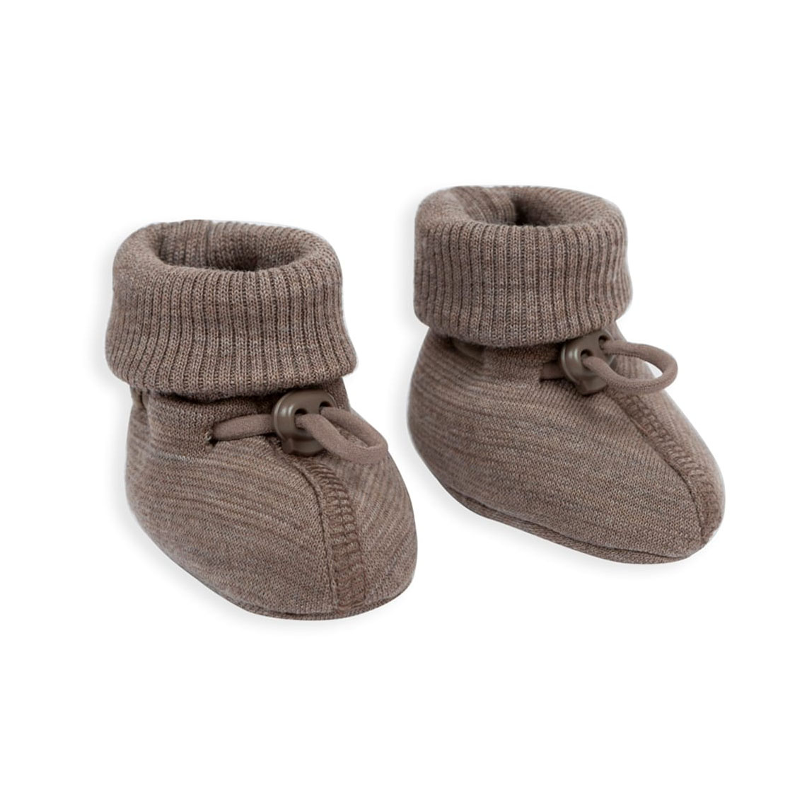 Babyslofjes van 100% merino wol. De slofjes hebben een boord die je om kunt slaan of op kunt zetten en ze zijn gemakkelijk dicht te maken met een trekkoordje. De slofjes zijn dubbellaags en pillen niet. Verkrijgbaar in maten 56/62 t/m 92/98. Twijfel je over de maat? Kies dan altijd voor de grotere maat!