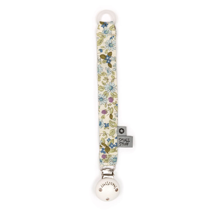 Vrolijk speenkoord van 22 cm lang. Gemaakt van 100% katoen en voorzien van een houten klip en rubber ring om de speen vast te houden. Zo raak je nooit meer een speentje kwijt.