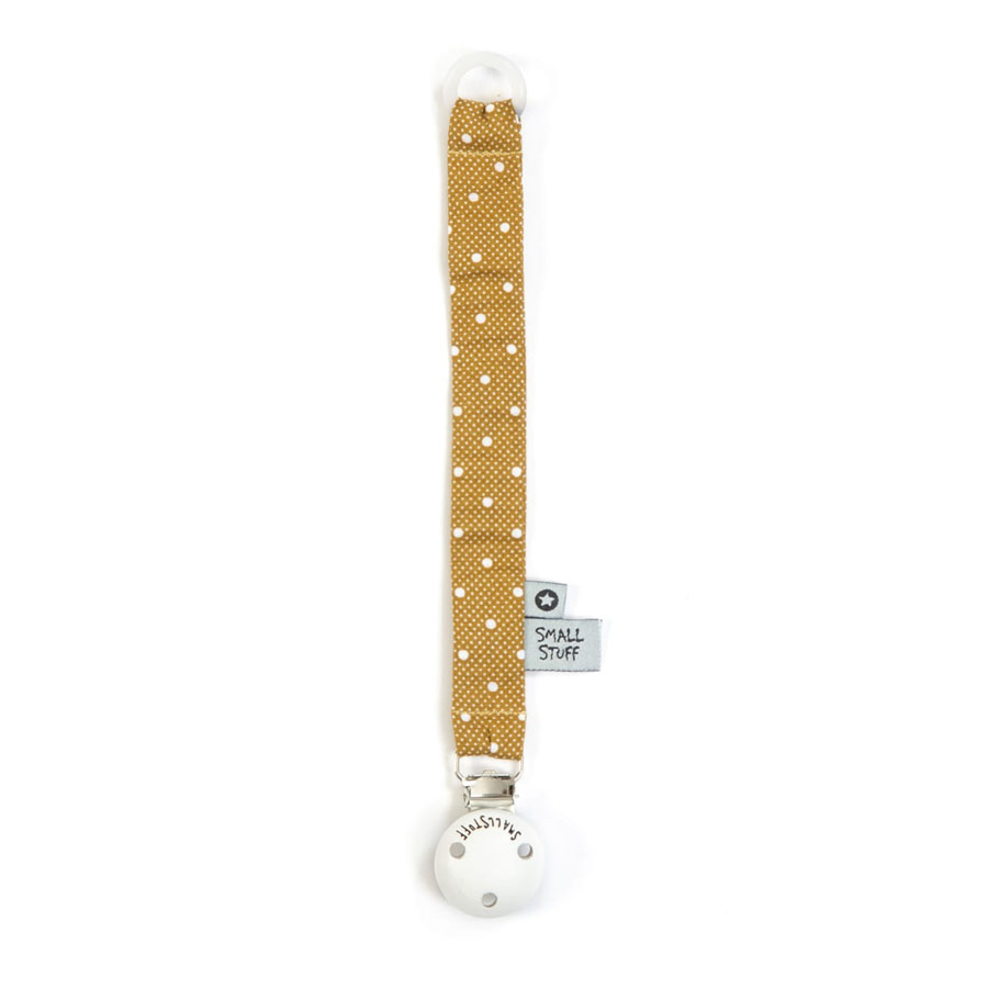 Vrolijk speenkoord van 22 cm lang. Gemaakt van 100% katoen en voorzien van een houten klip en rubber ring om de speen vast te houden. Zo raak je nooit meer een speentje kwijt.