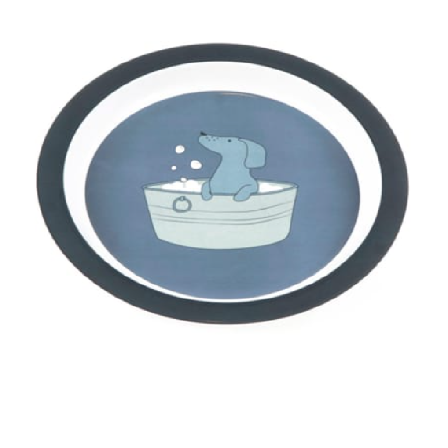 Als er lieve hond onder je eten verstopt zit, dan eet je toch graag je bordje leeg? Dit leuke kinderbordje is 21,5 cm groot in doorsnede en kan tegen een stootje! Kan in de vaatwasser maar liever niet in de magnetron.