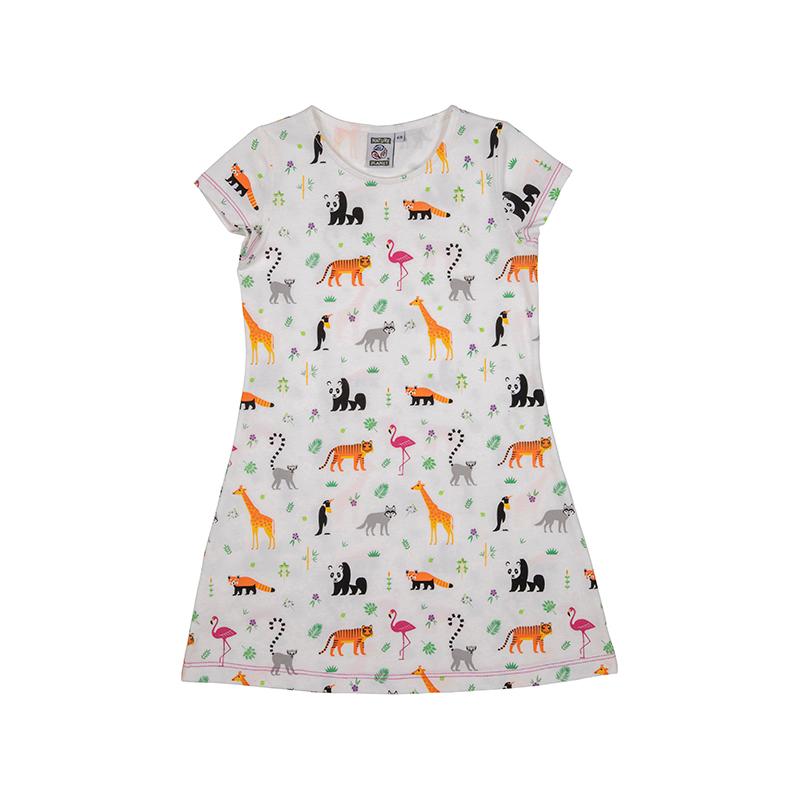Nachthemd met opdruk van tijgers, giraffes, panda's en veel meer. De stof is heerlijk zacht en blijft mooi, ook als je het vaker wast. Gemaakt van een prachtige kwaliteit katoen. Verkrijgbaar in 4 maten.