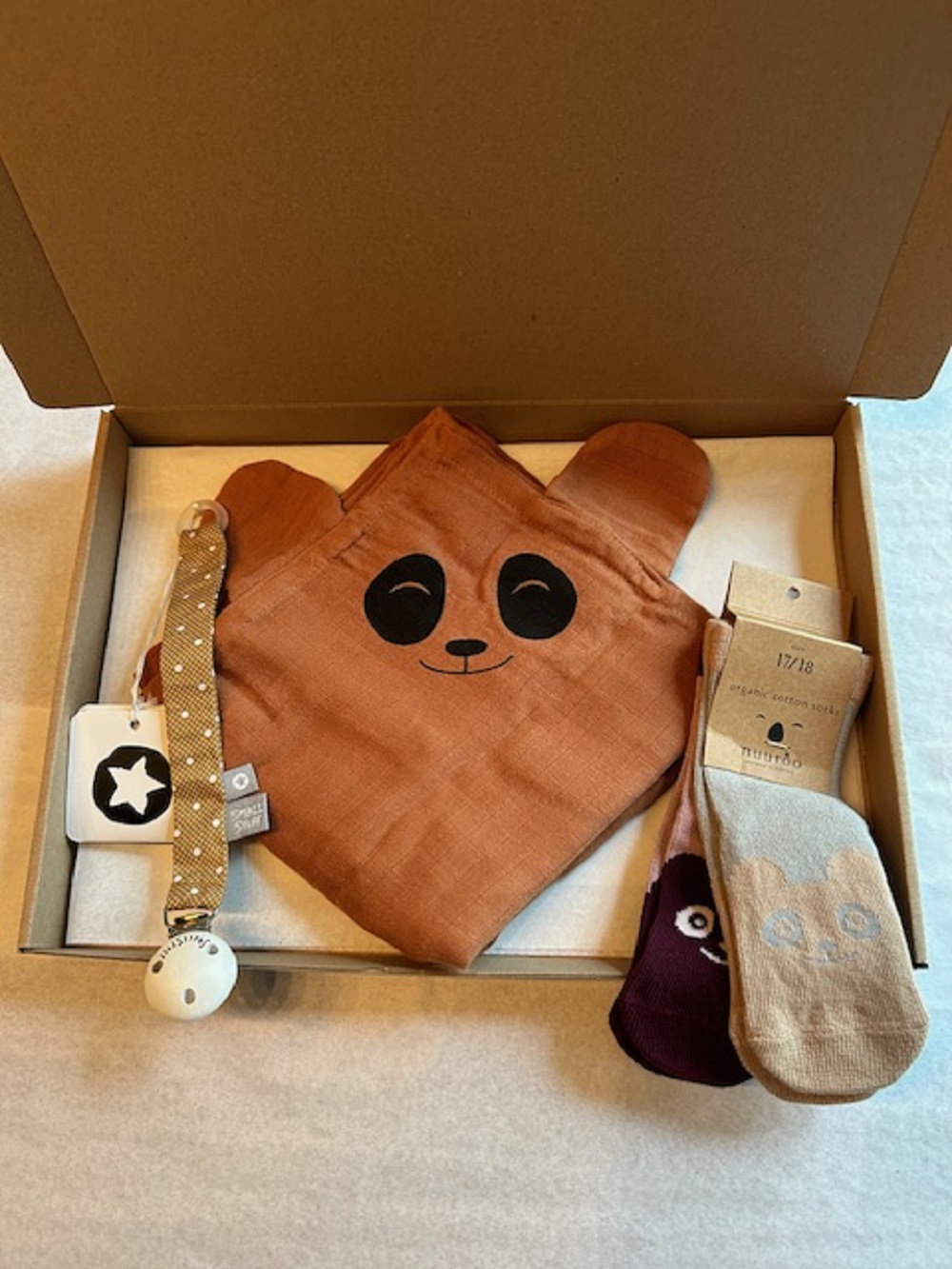 Het kraamcadeau pakket is samengesteld met de mooiste baby spulletjes van het merk Nuuroo.